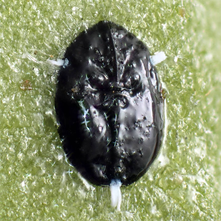 ツバキ類にこいつがいました。初物です。体長は約0.7×1.1mmです。
